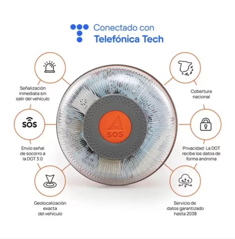 Nous devons le transporter dans la boîte à gants de notre véhicule et, en cas de panne ou d'accident, nous pouvons l'activer en quelques secondes, en le plaçant de préférence sur le toit du véhicule. À ce moment-là, en plus d'émettre le signal lumineux, il se connectera à la plateforme DGT 3.0 pour transmettre sa localisation en temps réel et informer les autres usagers de la route de la situation.