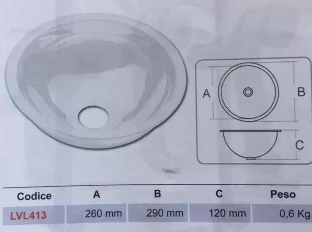 Lavabo rond en métal laqué blanc caravane camping-car camping-car - Réf.LVL413