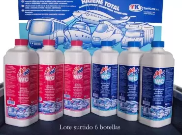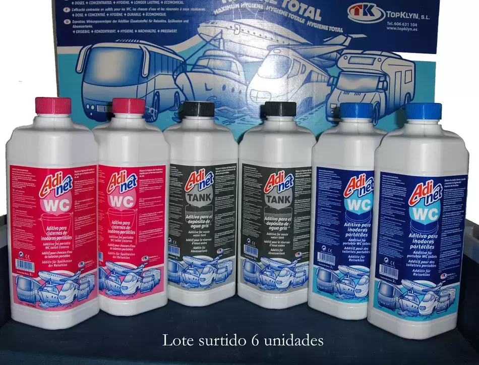 Lot assorti Adinet composé de 2 bouteilles citerne 2L, 2 bouteilles WC 2L cw et 2 bouteilles réservoir 2L.