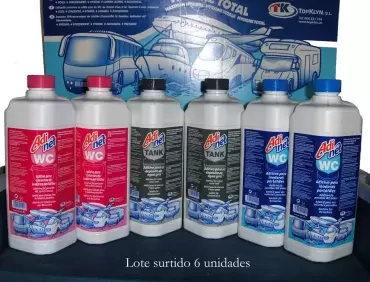 Lot assorti composé de 3 flacons de 2 L de citernes Adinet et 3 flacons de WC Adinet.