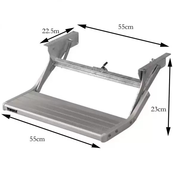 Marche d'entrée THULE en aluminium et acier escamotable à commande manuelle.