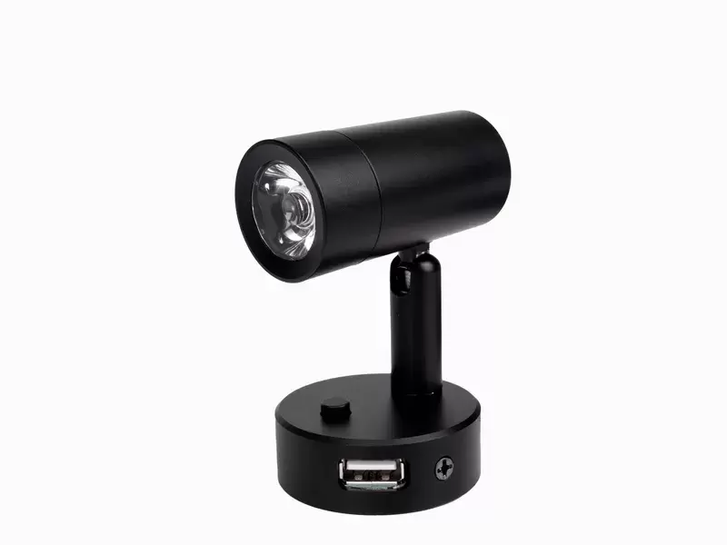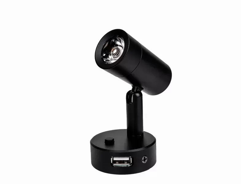 Mini lampe Led 12V intérieur Noir Satiné avec prise USB plus interrupteur, caravanes, camping-cars et camping-car. - Réf.83611