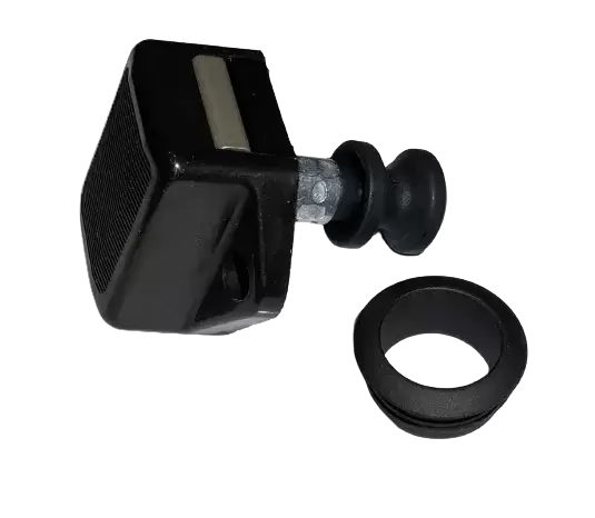 Mini serrure noire à bouton-poussoir avec rosace pour tiroirs et armoires de caravanes, camping-cars et camping-cars.