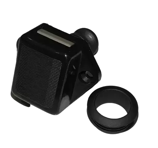 Mini fermeture à bouton-poussoir noir avec rosace pour tiroirs et armoires dans les caravanes, camping-cars et camping-cars.