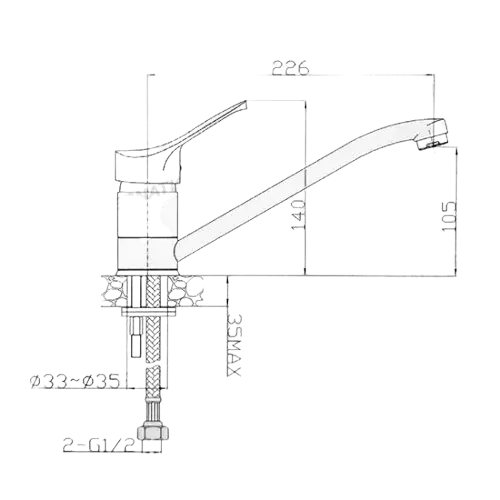 Mitigeur monocommande en métal chromé à installer dans les caravanes ou camping-cars avec un système de pompe externe, il ne fonctionne pas par contacts.