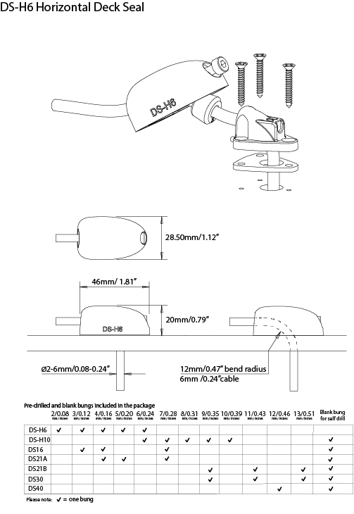 Il est fourni sous blister accompagné de 5 élastiques de réglage de différentes tailles de trous pour pouvoir insérer le câble souhaité selon les mesures indiquées.
