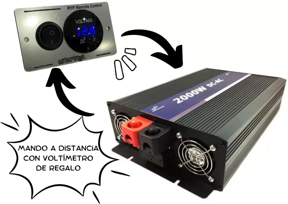Onduleur Onda Pura 2000W, 230V, 12V pour caravanes, camping-cars, camping-cars et 4x4 terrestres.