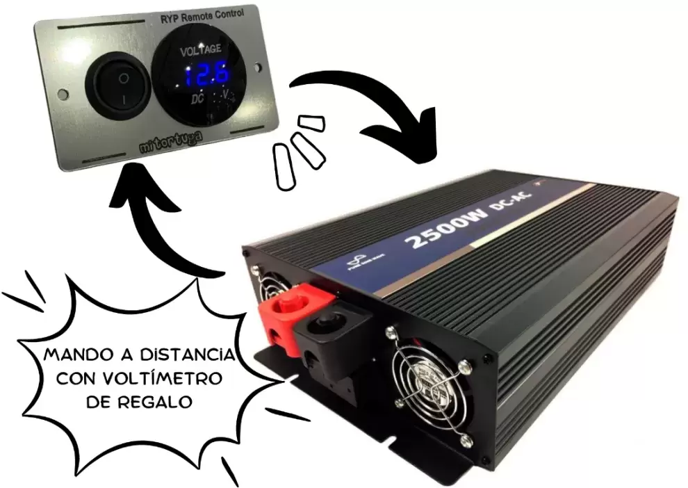Onduleur Onda Pura 2500W, 230V, 12V pour caravanes, camping-cars, camping-cars et 4x4 terrestres.