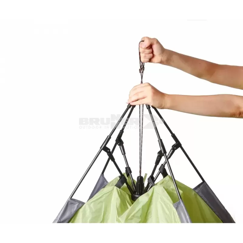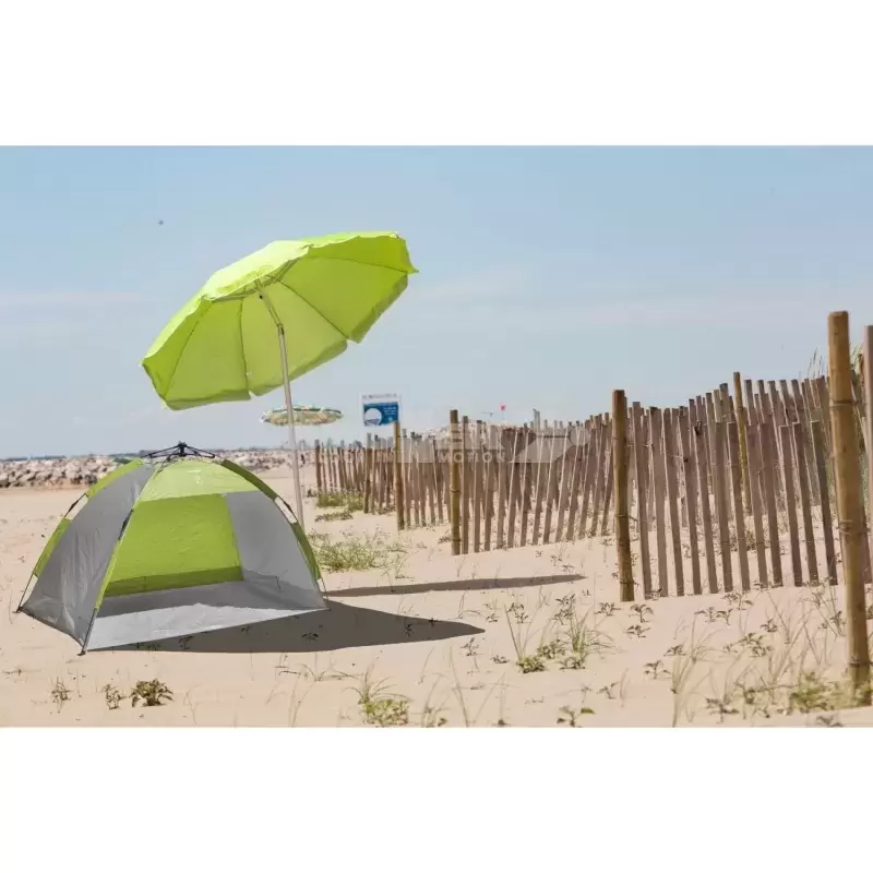 Tente pare-soleil avec barres en fibre de verre intégrées, ouverture automatique de type parapluie.
