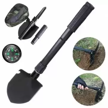 Pelle et pioche avec boussole pliante camping caravaning polyvalente