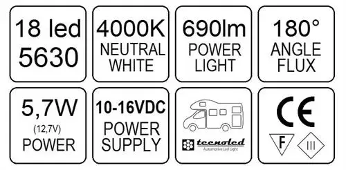 Plafonnier plafonnier TecnoLed ovale 12v 18 Led surface caravane camping-car camping-car