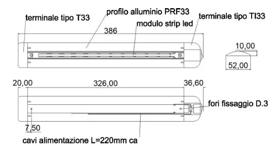 Dimensions : 386 mm de longueur x 52 mm de largeur x 10 mm de profondeur