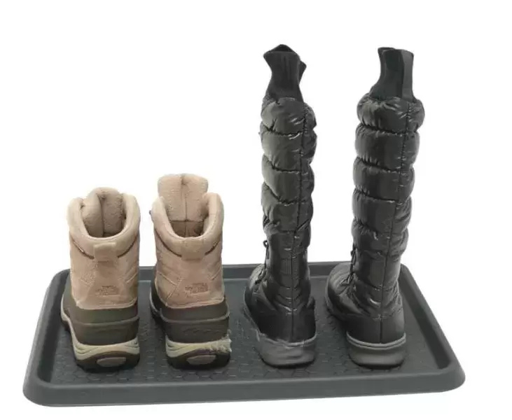 Pratiquez un plateau multi-usages à partir d'un plateau de bureau pour pouvoir l'utiliser comme on le voit sur la photo placée à l'entrée pour laisser les chaussures aux intempéries pour retenir l'eau.