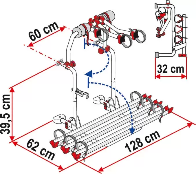 La norme prévoit 2 vélos, mais une troisième roue peut être attachée en ajoutant un rail supplémentaire.