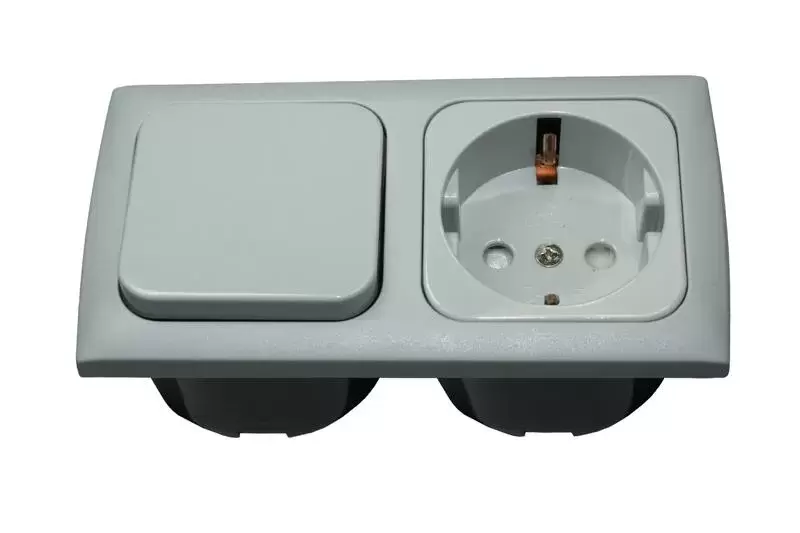 Prise + interrupteur intérieur avec cadre GRIS CLAIR pour caravane, camping-car et camping-car. - Réf.HA4102020H