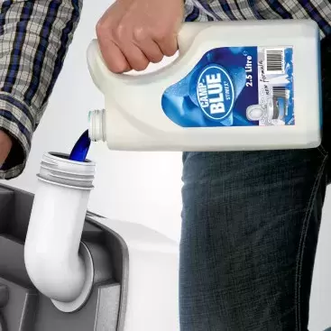 Produit chimique bleu Camp-Blue Stimex en 2,5 litres pour les salles de bain des caravanes, camping-cars et camping-cars.