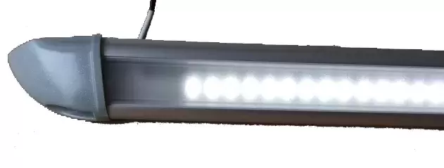 Profil pour verser de l'eau avec lumière LED intégrée idéal pour le montage au-dessus des portes en aluminium avec une mesure totale de 69 cm de long