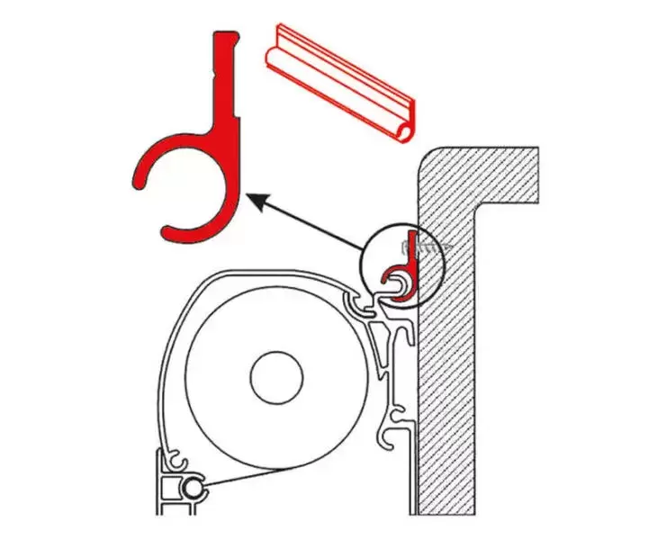 Ce profil est souvent utilisé dans la construction de caravanes ou de camping-cars pour sceller solidement les coutures du corps contre l'eau et les cacher visuellement.