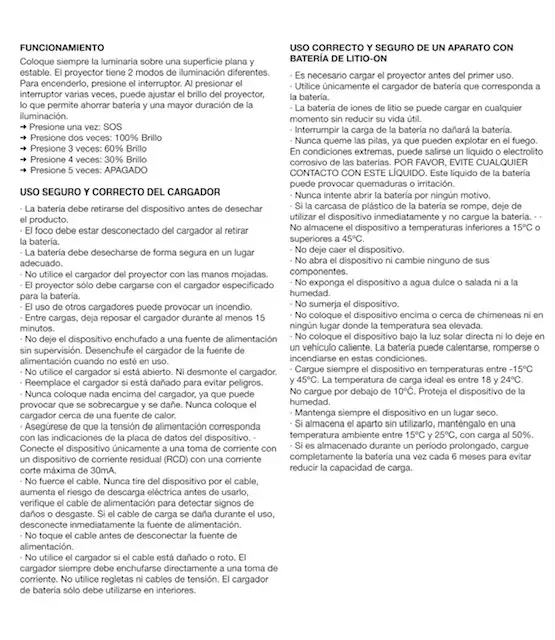 Batterie LiFePO4 (Lithium) Charge : 3-5 h Durée : 4-8 h Température de couleur : 6500K