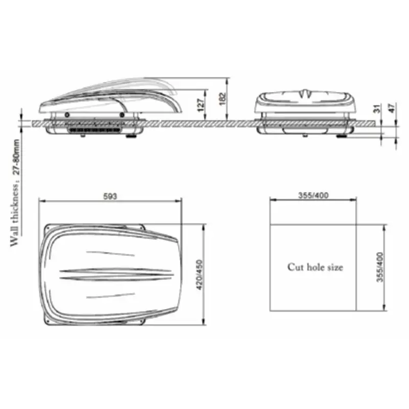 Fonctionnement 12V avec une consommation de seulement 20W en ventilation et 4W en éclairage, lumière LED.