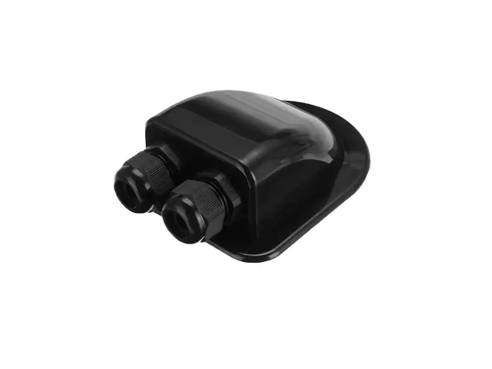 Raccord de cloison noir avec 2 entrées pour kit solaire de caravanes, camping-cars et caravanes aménagées.