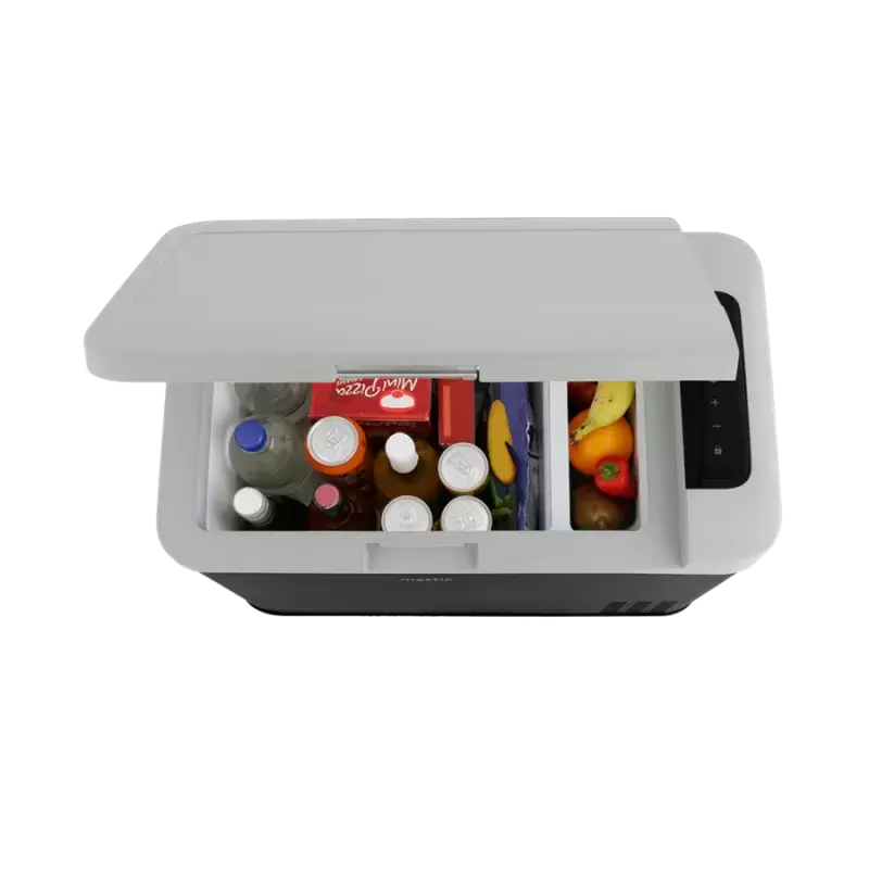Le réfrigérateur à compresseur MESTIC peut non seulement refroidir, mais aussi congeler ! Dans son tiroir spacieux, vos collations et boissons restent à température idéale. Idéal pour le camping ou les déplacements.