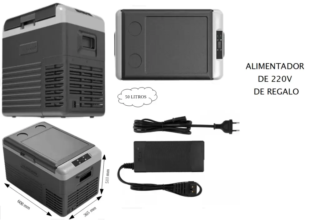 Réfrigérateur congélateur EZA 50 Litres 12V compresseur + connecteur 220V en CADEAU, Caravanes, camping-cars, camping-car et 4x4 terrestre. - Réf.522355