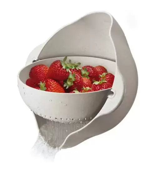 Récipient avec passoire et fonction rotative.