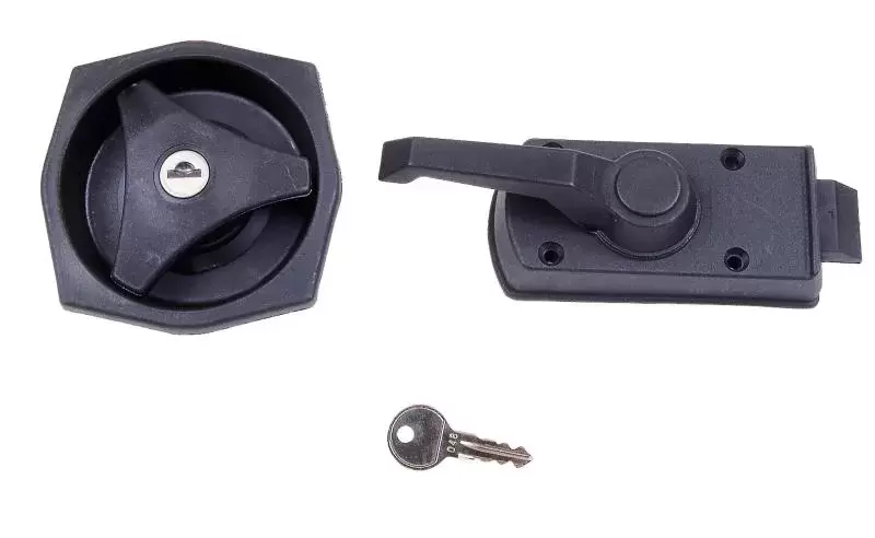 Serrure de porte de caravane noire épaisseur de paroi 25-35 mm.
