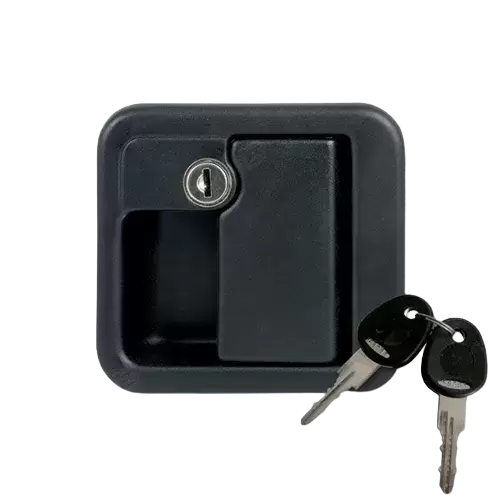 Serrure de couleur noire pour porte d'entrée pour caravanes et camping-cars.
