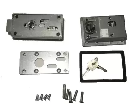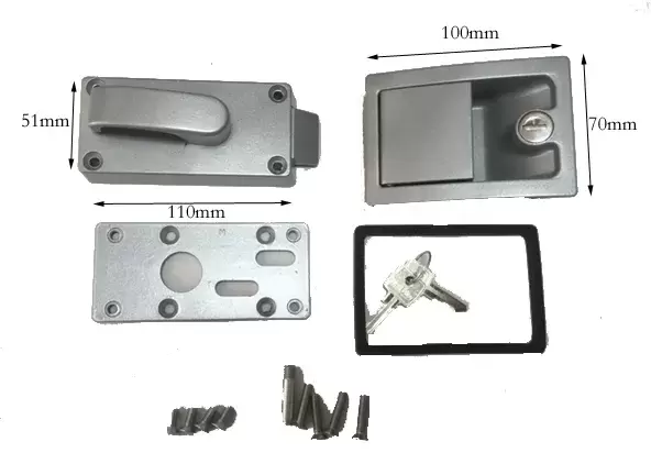 Serrure pour porte de caravane ou camping-car complète avec tous les accessoires pour son montage.
