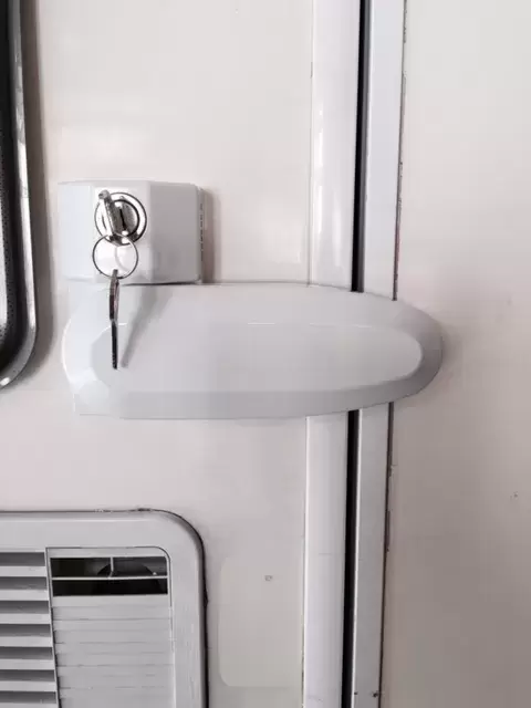 Fermeture pour portes de caravane ou camping-car Thule avec fermeture et ouverture depuis l'intérieur du véhicule.