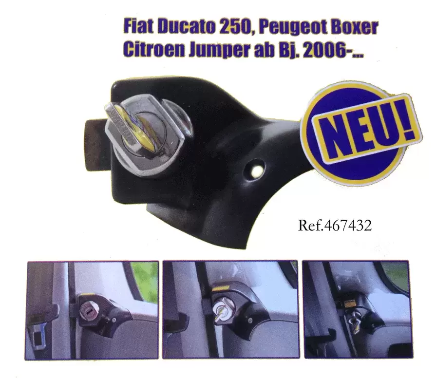 Serrure HEOSsafe pour portes de cabine avec une clé parfaitement intégrée dans les portes des châssis Fiat Ducato 250, Peugeot Boxer, Citroen Jumper, à partir de l'année 2006, véhicules fabriqués jusqu'en 2021.
