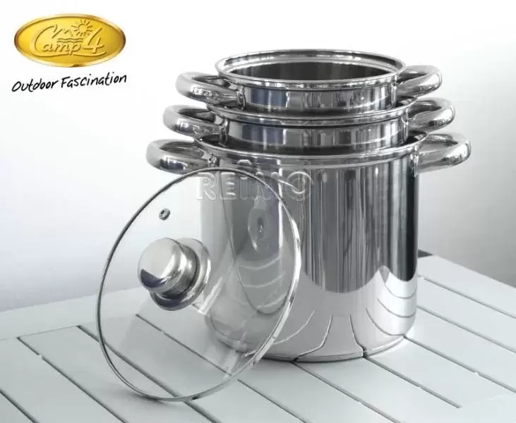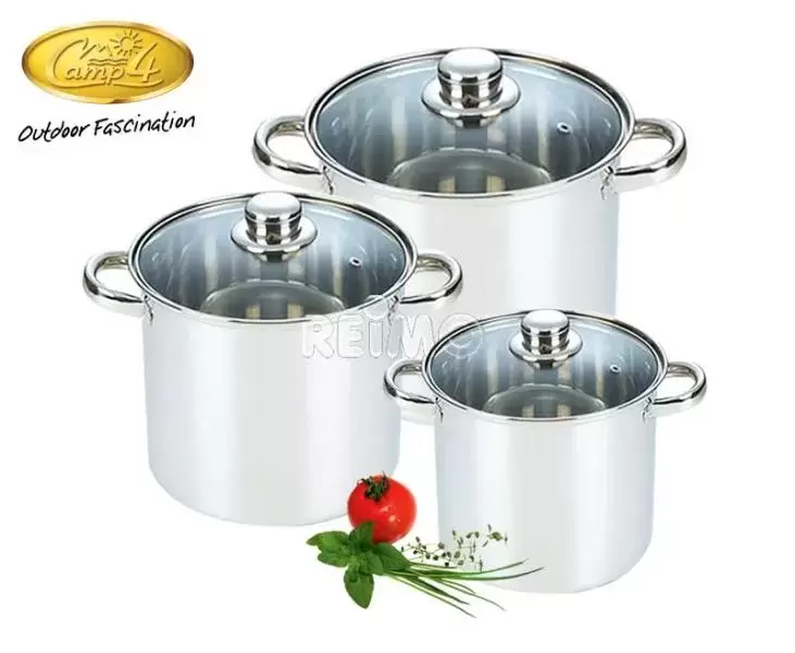 Ensemble de trois casseroles conçues pour les cuisines de caravanes et camping-cars.
