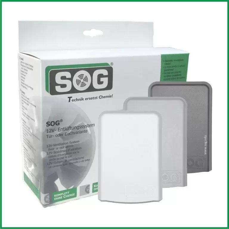 Ventilateur extracteur spécialement développé 12 V / 0,43 W. Extrait les odeurs désagréables et les fait passer à travers un filtre à charbon actif pour une utilisation en extérieur.