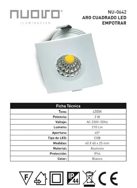 Spot LED COB 12V carré blanc pour installation encastrée dans caravanes, camping-cars et camping-cars.