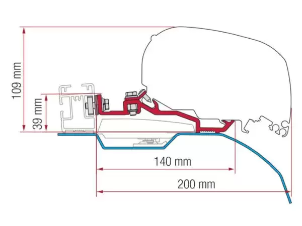 Este soporte permite instalar el toldo F80s en un Fiat Ducato con techo H2 y longitudes L2/L3/L4.