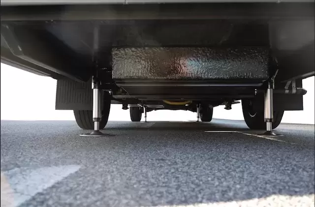 Système hydraulique de pointe qui, grâce à 4 stabilisateurs télescopiques, nivelle le véhicule sur n'importe quelle surface.