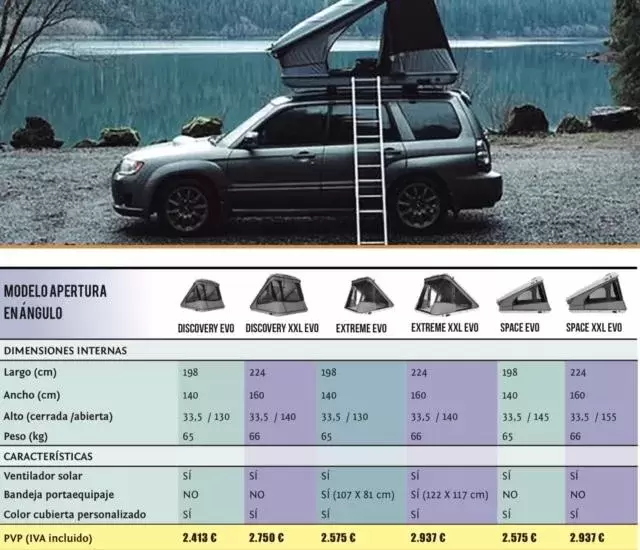 Chez MITORTUGA.ES, nous parions également sur le monde OVERLAND, une autre façon de pouvoir voyager et d'atteindre des endroits inimaginables, que nous nous obscurcirons et nous réveillerons d'une manière magique et différente, après avoir essayé une autre marque de tentes de toit nous avons opté pour une marque peut-être l'une des plus chères du marché, mais logiquement pour une raison, disons que JAMES BAROUD est la FERRARI des tentes de toit avec des finitions parfaites et des composants européens INÉGALÉS et des tests de fabrication