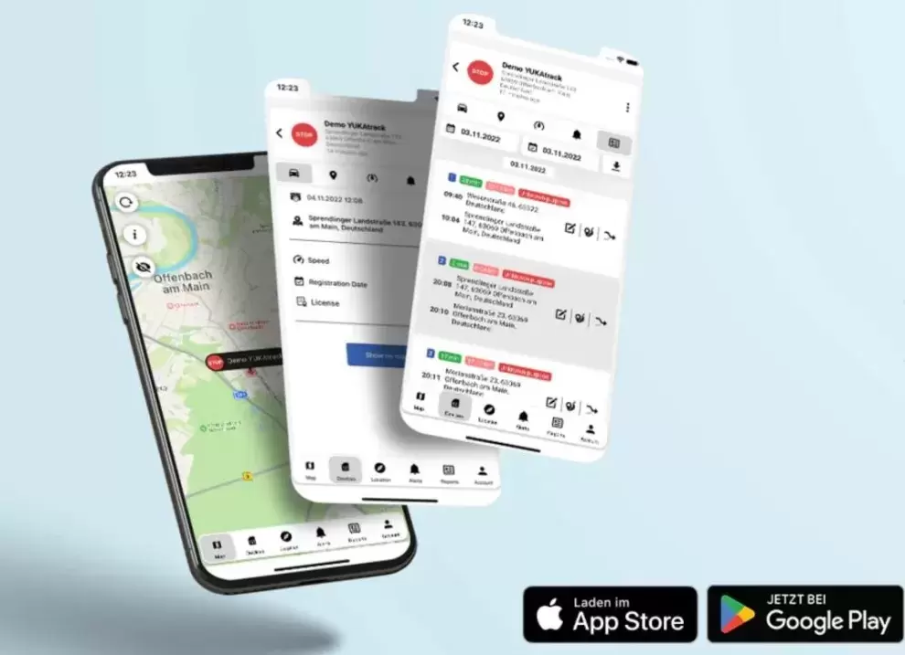 Les utilisateurs bénéficient de l'application YUKAtrack facile à utiliser, qui peut être téléchargée gratuitement sur l'App Store d'Apple et le Google Play Store. Avec l'accès aux données GPS en direct et à leurs évaluations, vous pouvez localiser un ou plusieurs véhicules à tout moment. Évaluez, par exemple, les vitesses et les infractions aux zones, ou consultez le rapport d'itinéraire pour voir où le véhicule s'est rendu et où il a été utilisé au cours des derniers jours. L'application YUKAtrack est un compagnon fiable pour la localisation de votre véhicule, même lorsque vous n'êtes pas dans la voiture. Gardez une trace de vos itinéraires, de vos chauffeurs et de vos véhicules où que vous soyez.