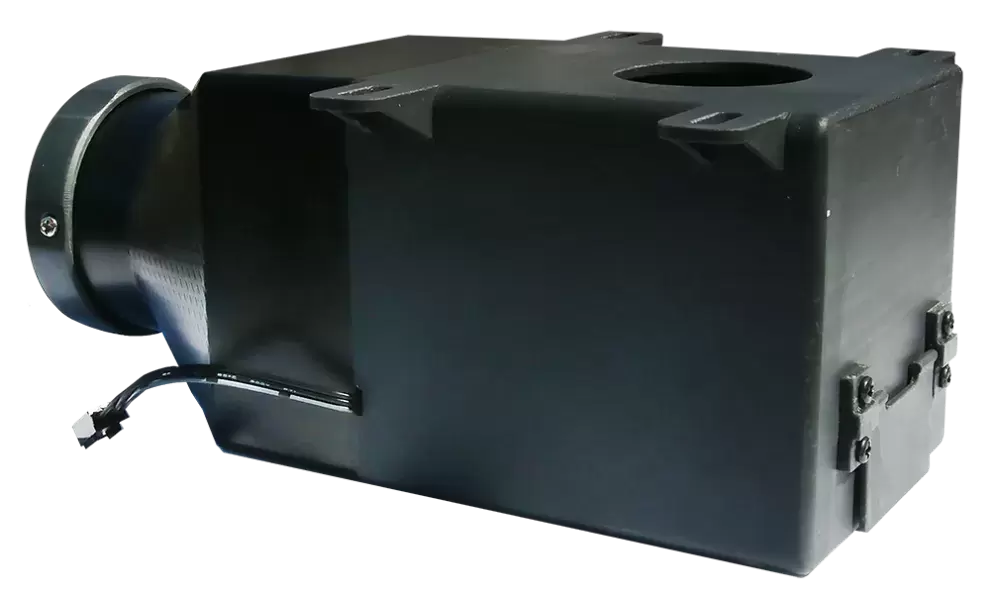 Après le branchement, un filtre à charbon est inséré pour éliminer les éventuelles odeurs pouvant survenir. Celui-ci se ferme avec le couvercle et la cassette peut être réinsérée.