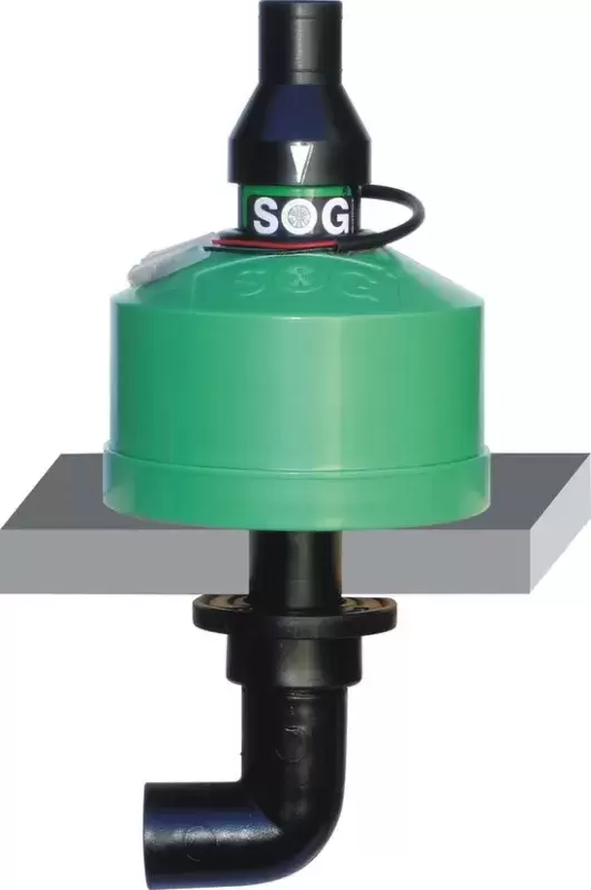 Grâce à un conduit spécial dans le toit, le système SOG® est ventilé à travers le toit. Les pièces que nous fournissons sont adaptées au système de canalisations d'eaux usées et peuvent être achetées auprès des revendeurs spécialisés du camping.