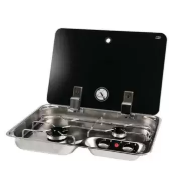 Réchaud 2 feux CAN FC1346-E Acier inoxydable avec dessus en verre pour caravanes, camping-cars et camping-cars. - Réf.CANFC1346-E Référence CANFC1346-E 234,40 €
