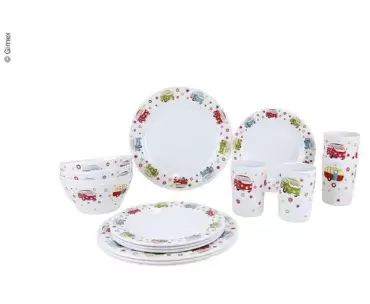 Vaisselle mélamine décoration Van 16 pièces pour 4 personnes camping caravaning - Réf.917935 Référence 917935 49,50 € Rupture de stock